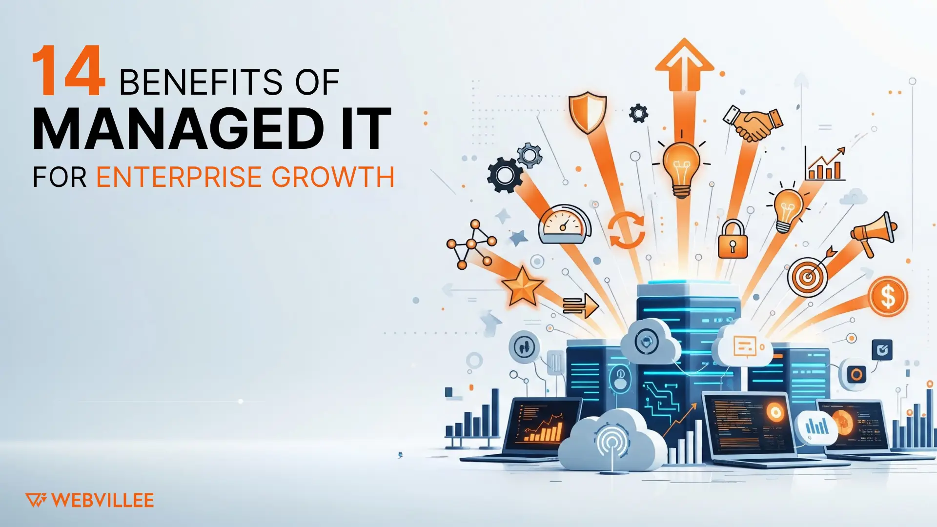 In this blog, we will explore 14 practical benefits that managed IT services deliver. Each section outlines how outsourcing IT enables enterprises to reduce risks, boost efficiency, and sustain growth while keeping costs under control.